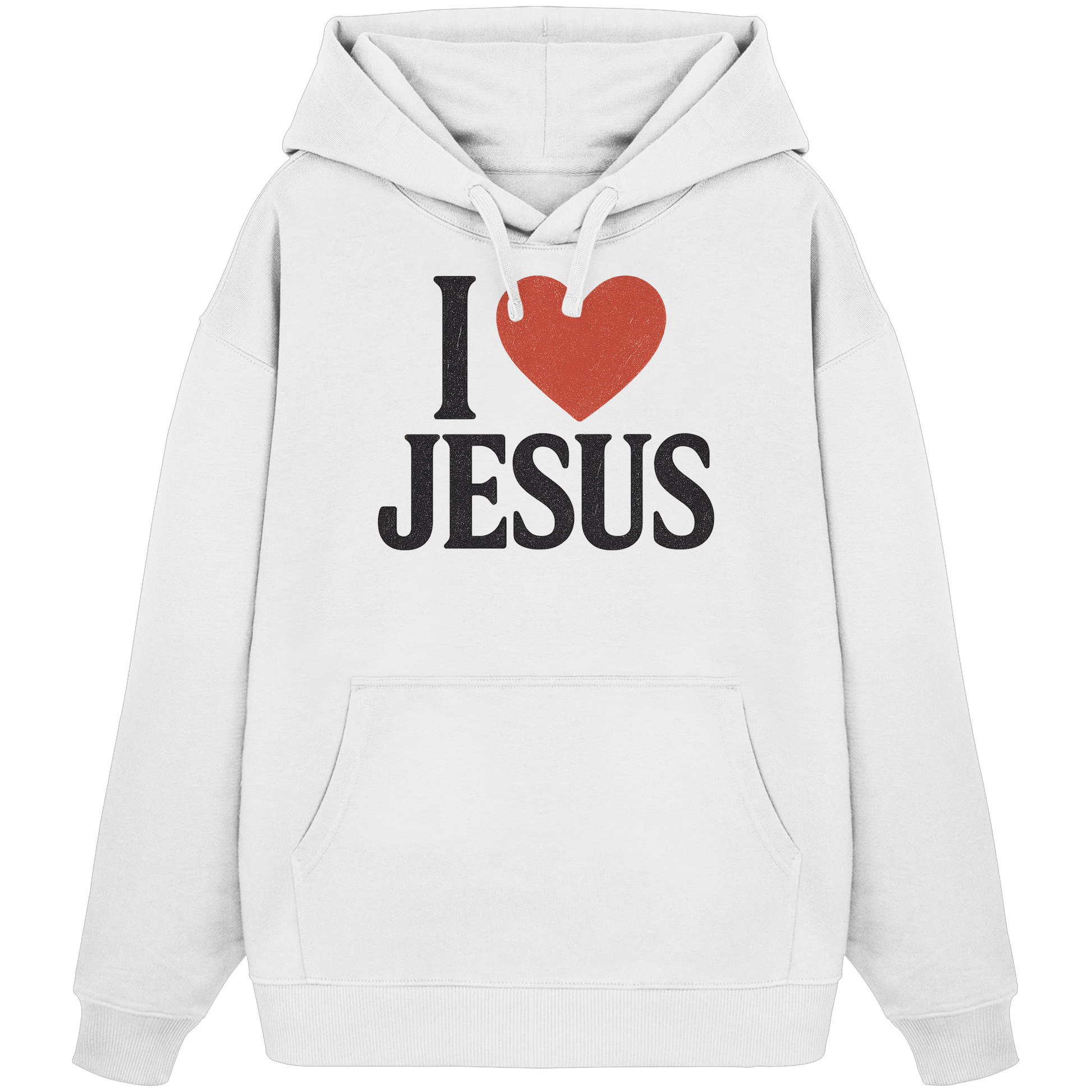 Der 'I Love Jesus - Organic Oversize Hoodie' kombiniert Komfort mit einer klaren Botschaft.