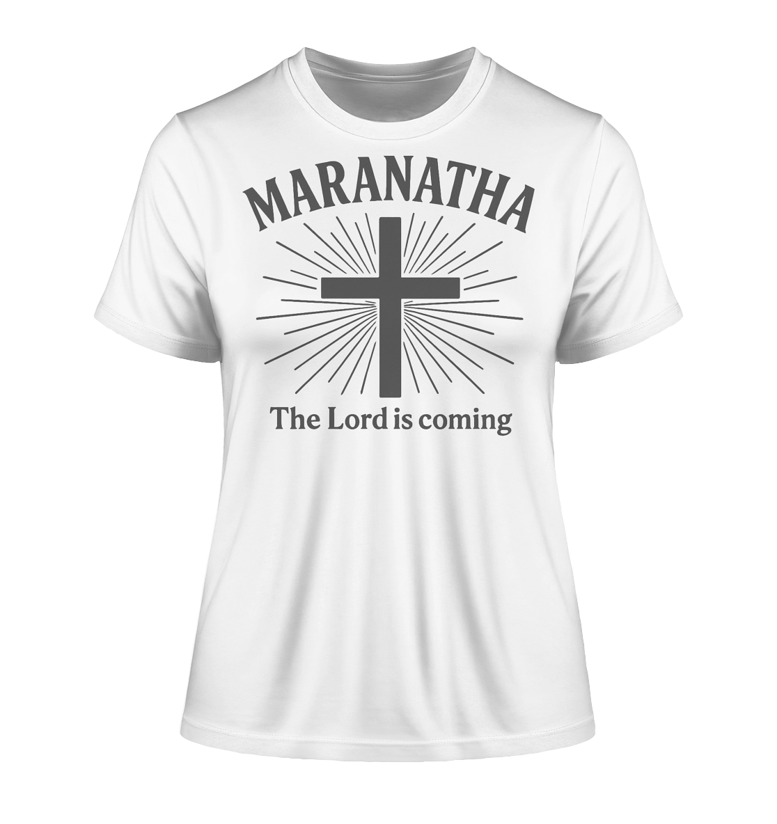Maranatha – ein uralter Ruf, heute aktueller denn je: „Der Herr kommt.“ Dieses Design trägt die Hoffnung sichtbar nach außen. Schlicht, klar und voller Erwartung auf Jesu Wiederkunft. Ein Statement-Shirt für alle, die bereit sein wollen.