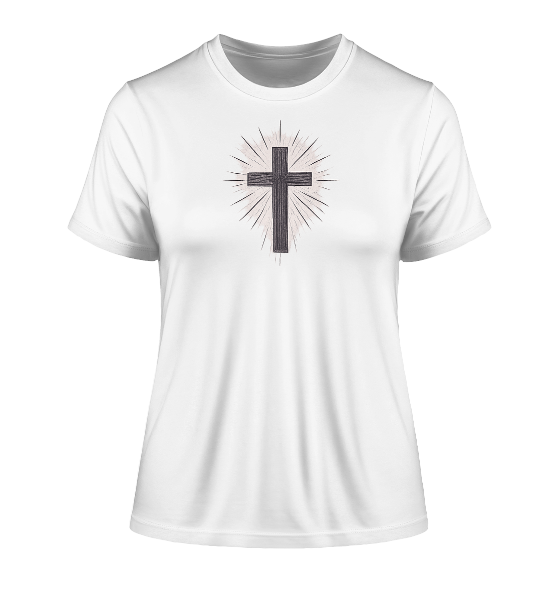 Vorne schlicht, hinten mit Aussage: Dieses Shirt verbindet ein handgemaltes Kreuz auf der Brust mit einem eindrucksvollen Backprint – ein Wanderer auf dem Weg durchs Unbekannte. Symbol für alle, die ihren Weg im Vertrauen gehen.
